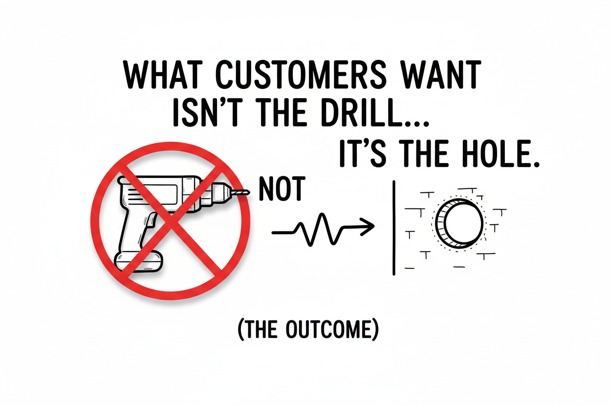 「顧客が欲しいのはドリル(工具)ではなく、壁に開いた穴(成果)である」